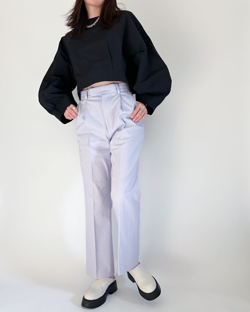 爽やかなラベンダーカラーでさらりとリラックス感漂うパンツです。
