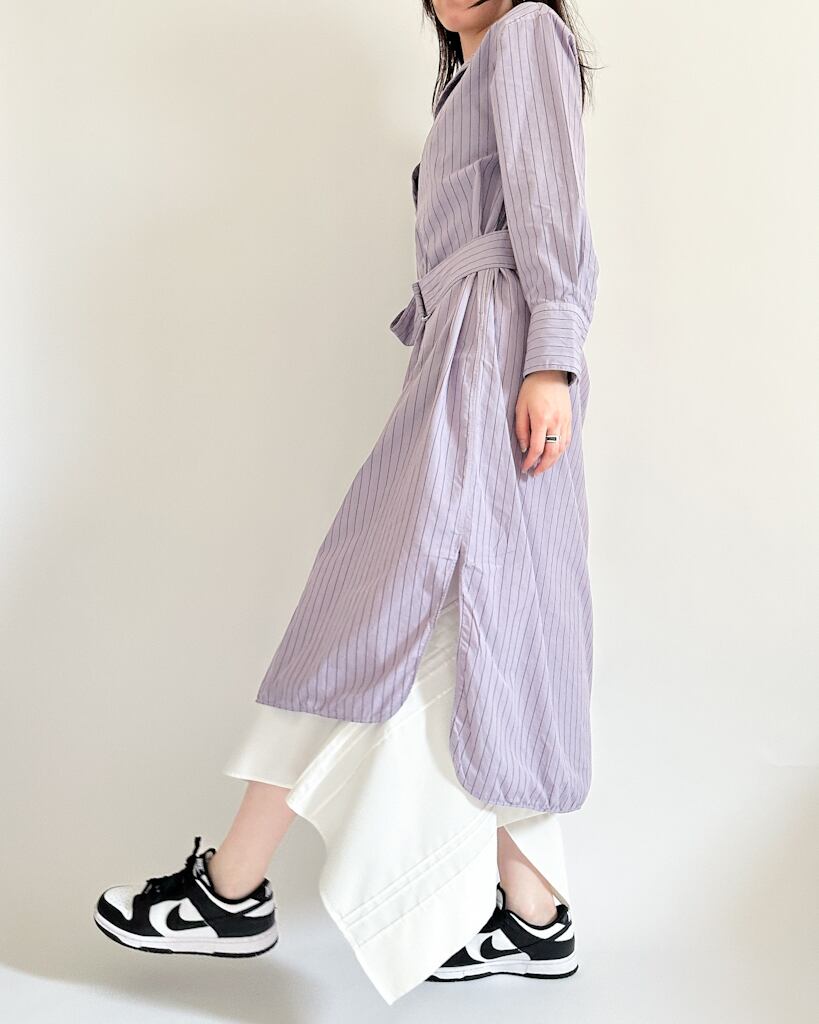凛とした佇まいのシャツワンピースは付属ベルトで印象の幅がぐっと広がります。