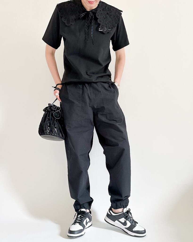 3枚重ねたシアー素材にドットのあしらいが、シンプルな装いにも自然な華やぎをプラス。