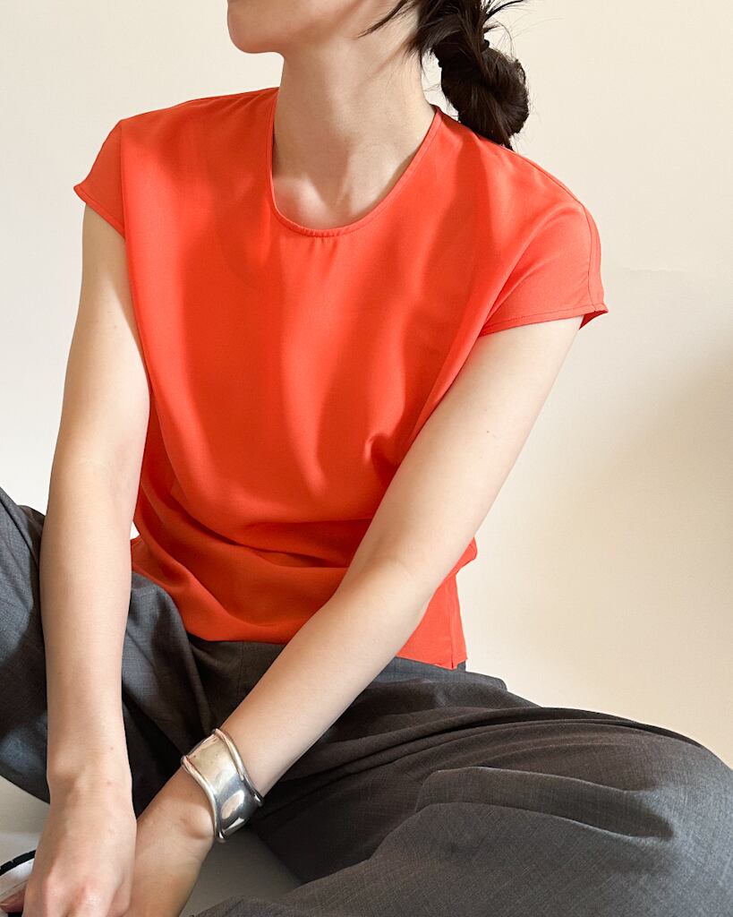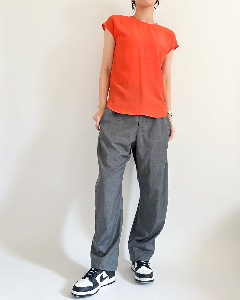 スタイリングに鮮やかなリズムを添えてくれるオレンジカラー。
