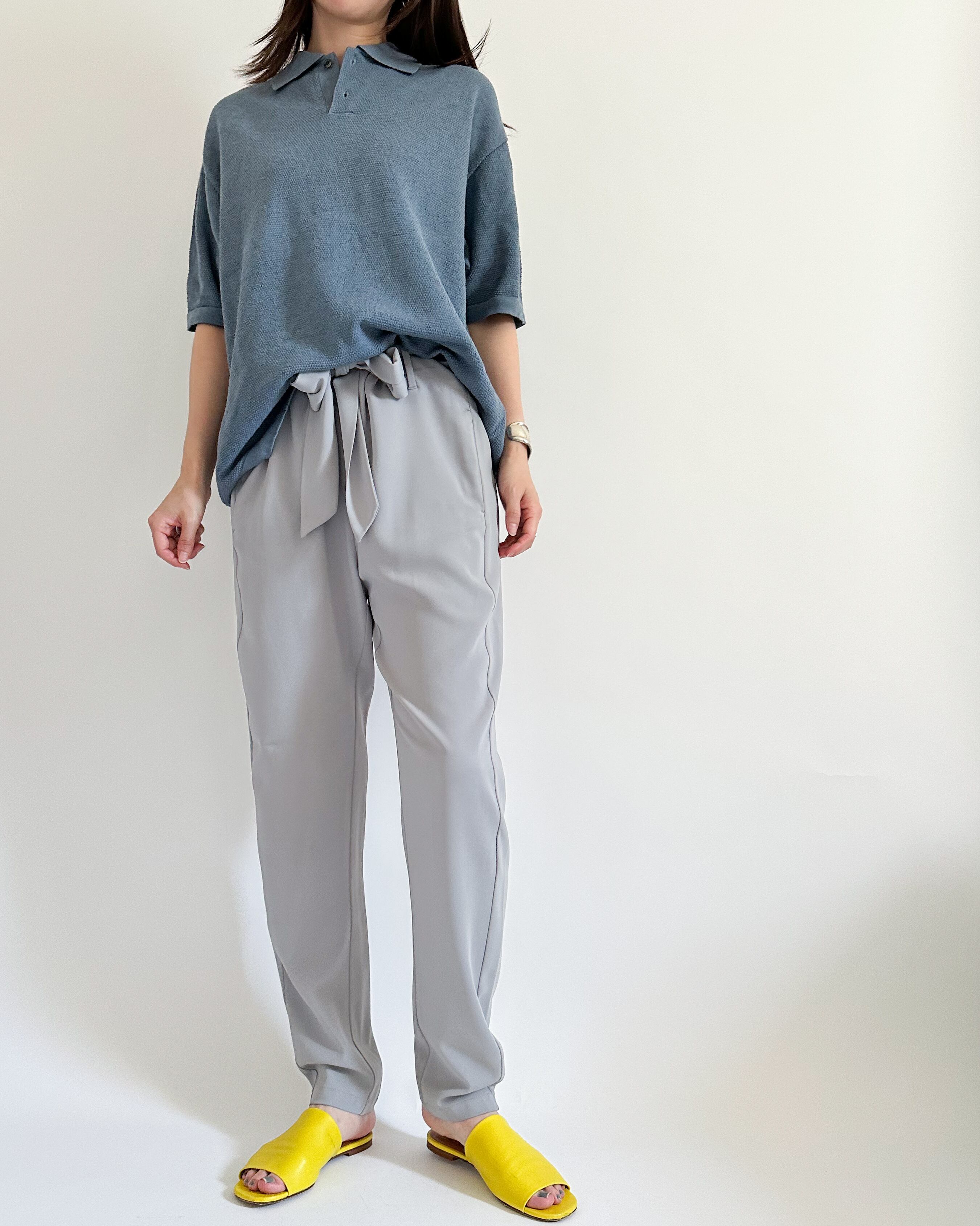 とろみ生地でノンストレスな履き心地なのに、ミニマルながらもスタイリングに抜け感とエッジをプラスしてくれます。