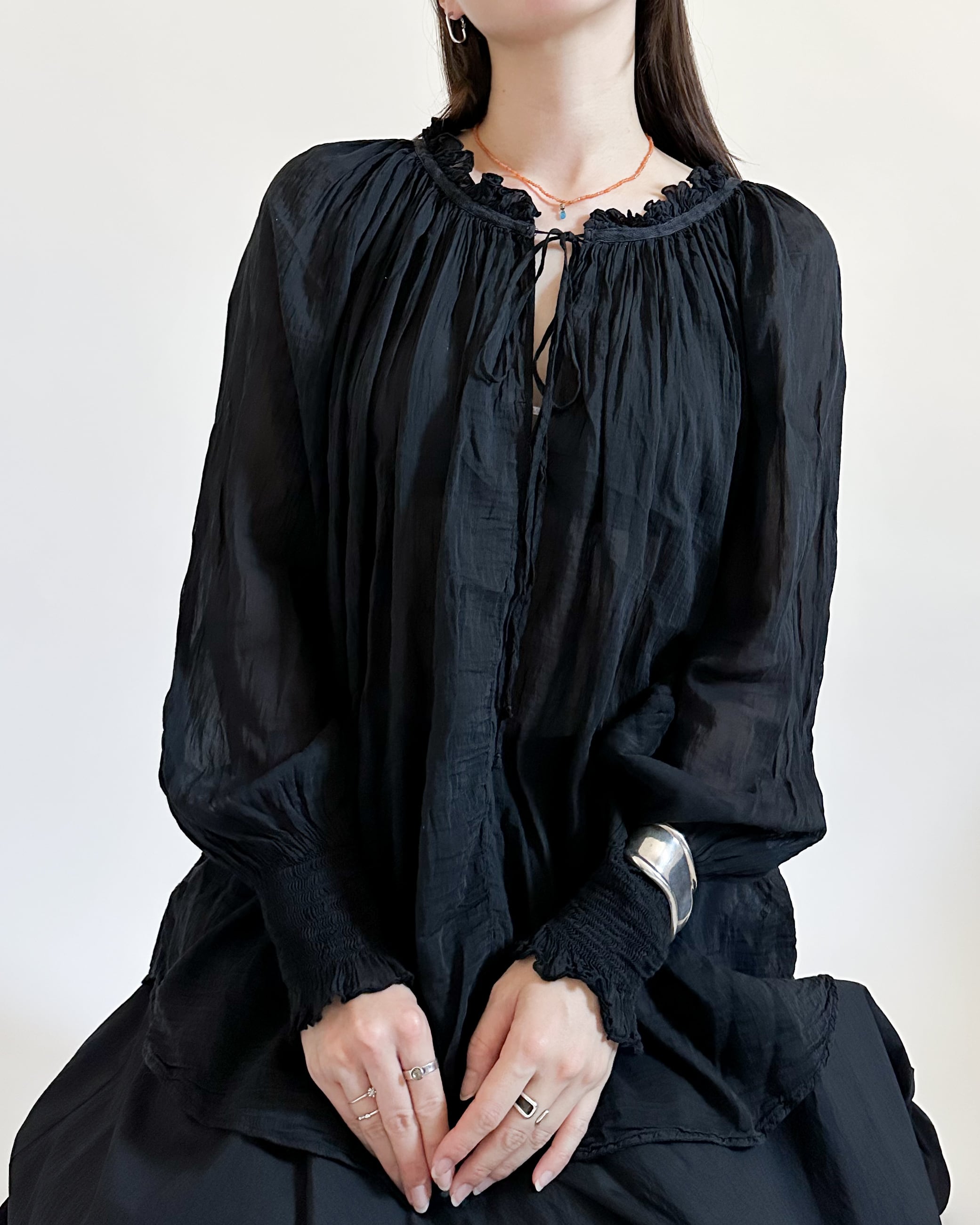 silk混でエアリーな着心地がやさしく包み込む、ふんわりシルエット。