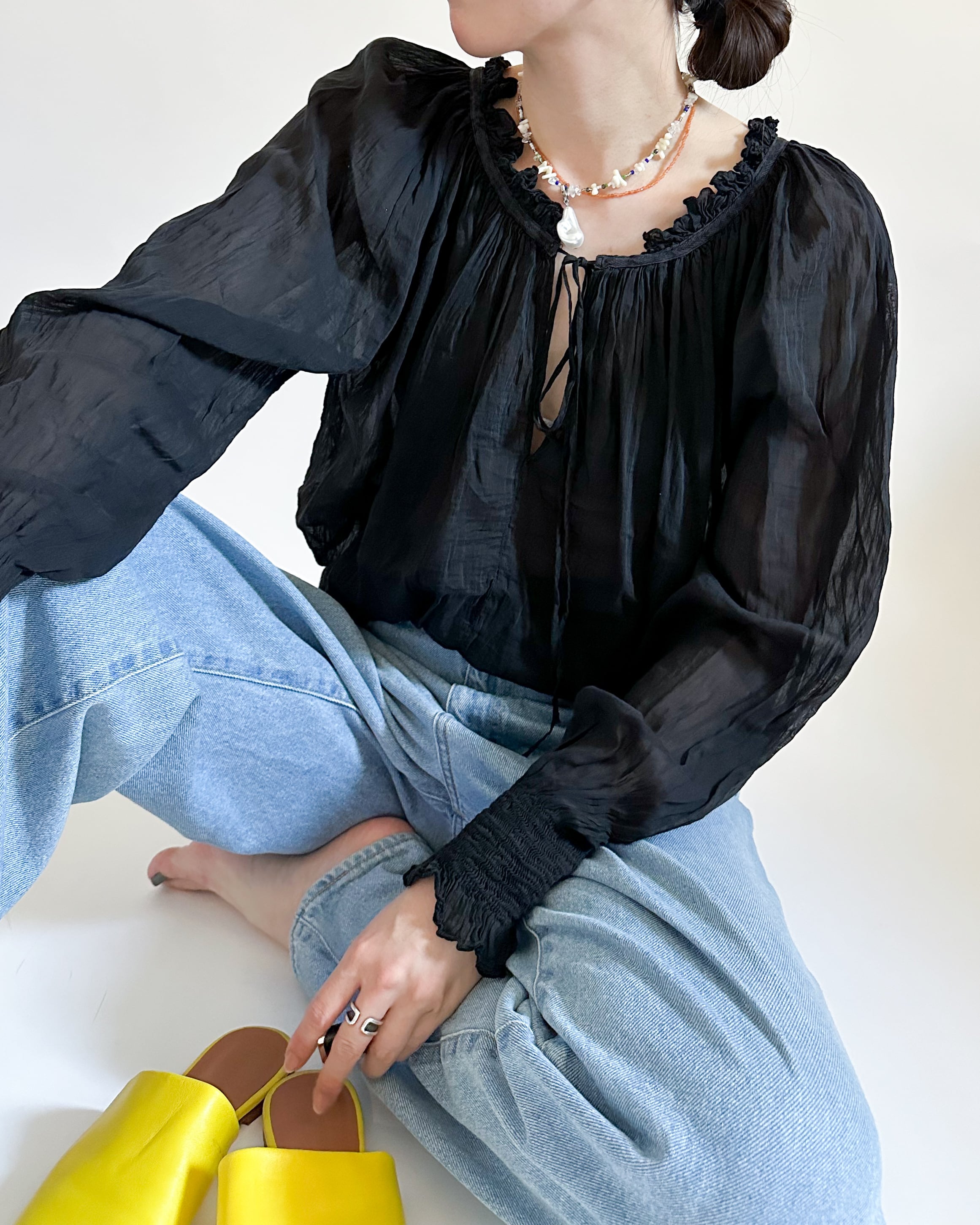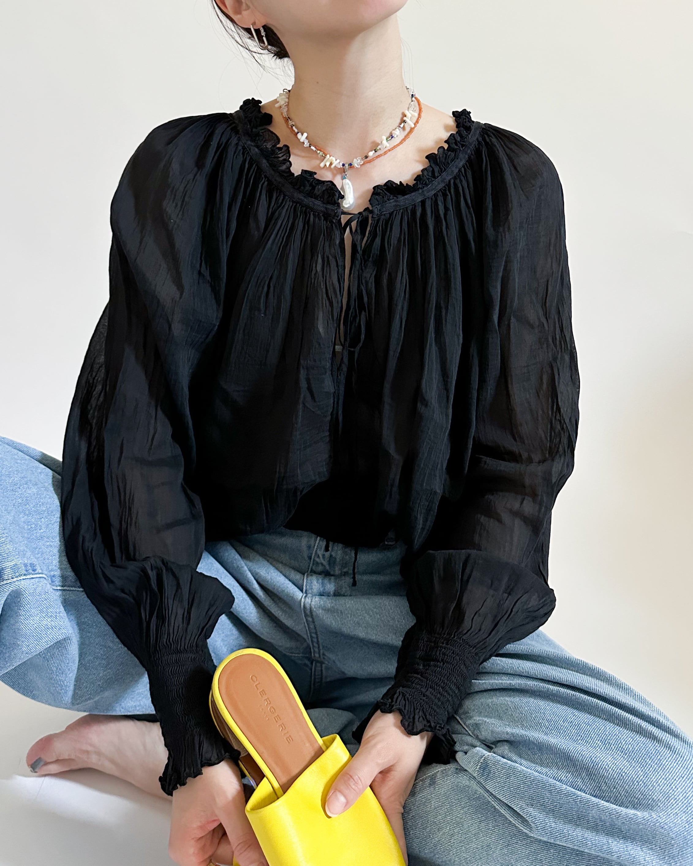繊細な透け感と軽やかさが、涼やかなforte_forteらしい女性らしさを感じさせます。