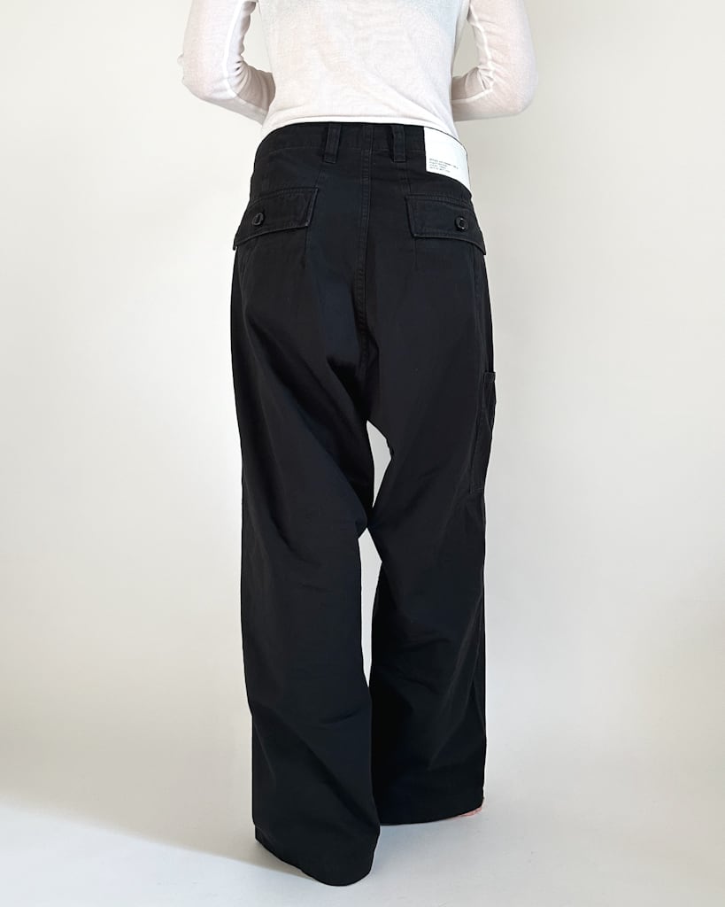 共生地のドローストリングや、ヴィンテージのライフベストから着想したバーボタン付きバックポケットなど、こだわり抜かれたディテールが随所に光る一本。