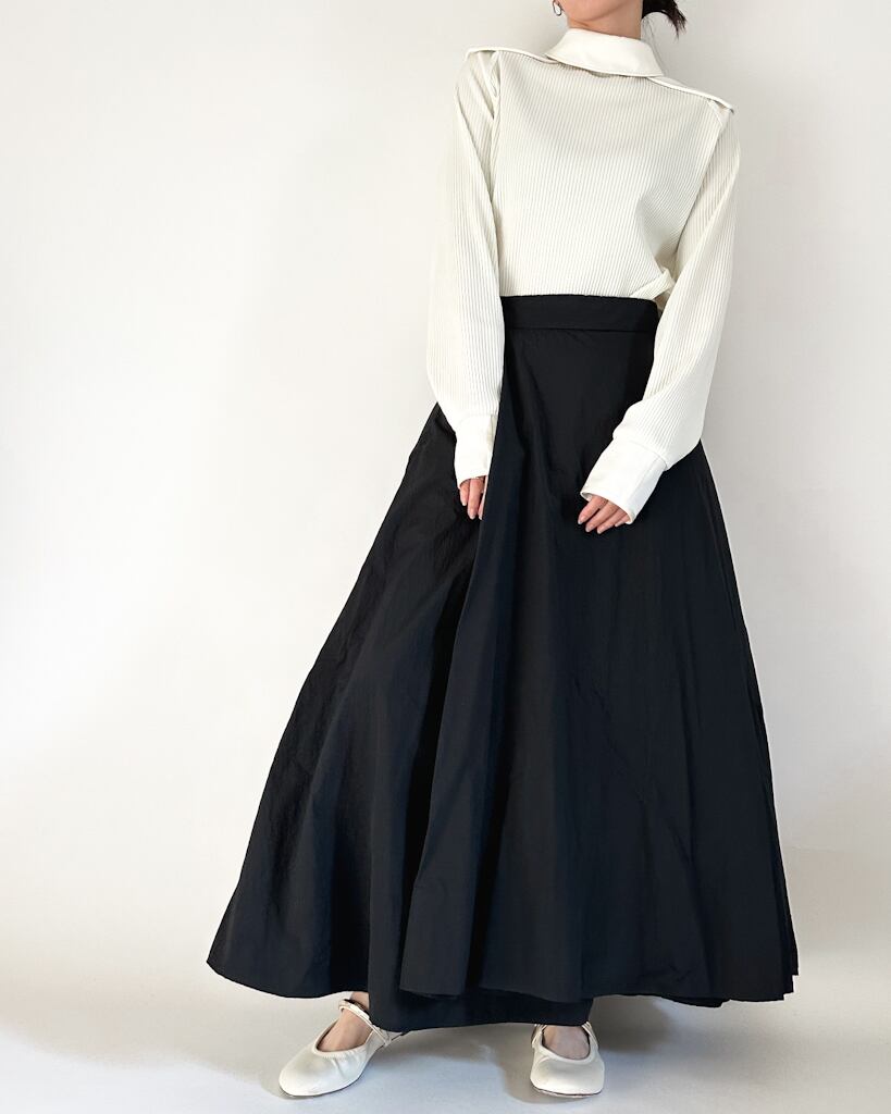 アートピースのように計算された首元が、スタイリングを一瞬でモードへ昇華してくれます。