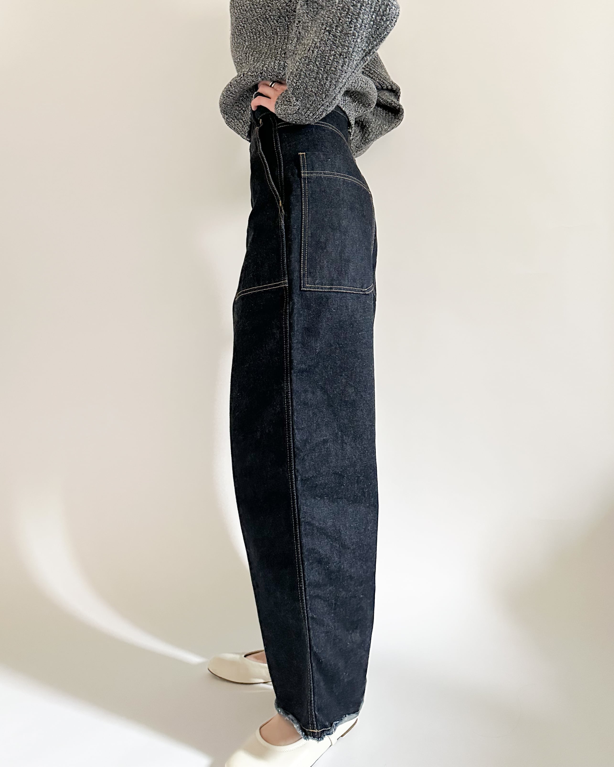 無骨さを抑えた構築的なシルエットに仕上げることで、シンプルなトップスと合わせるだけでもスタイリングが完成します。