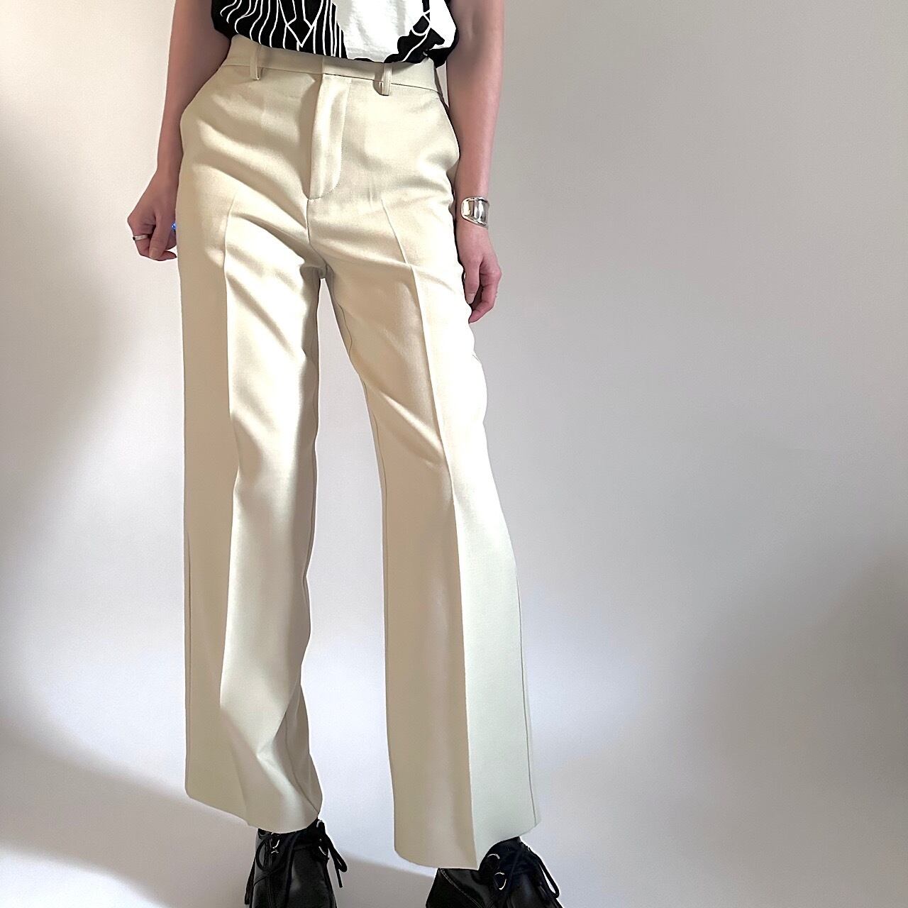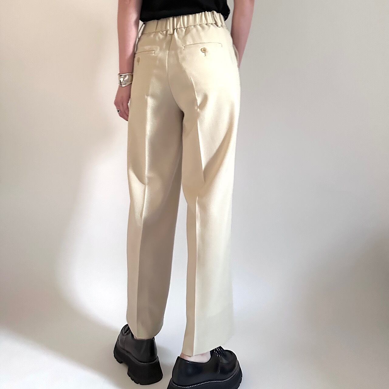 ハイウエストに少しワイドめなシルエット。シンプルだからこそ幅広いシーンで活躍。
