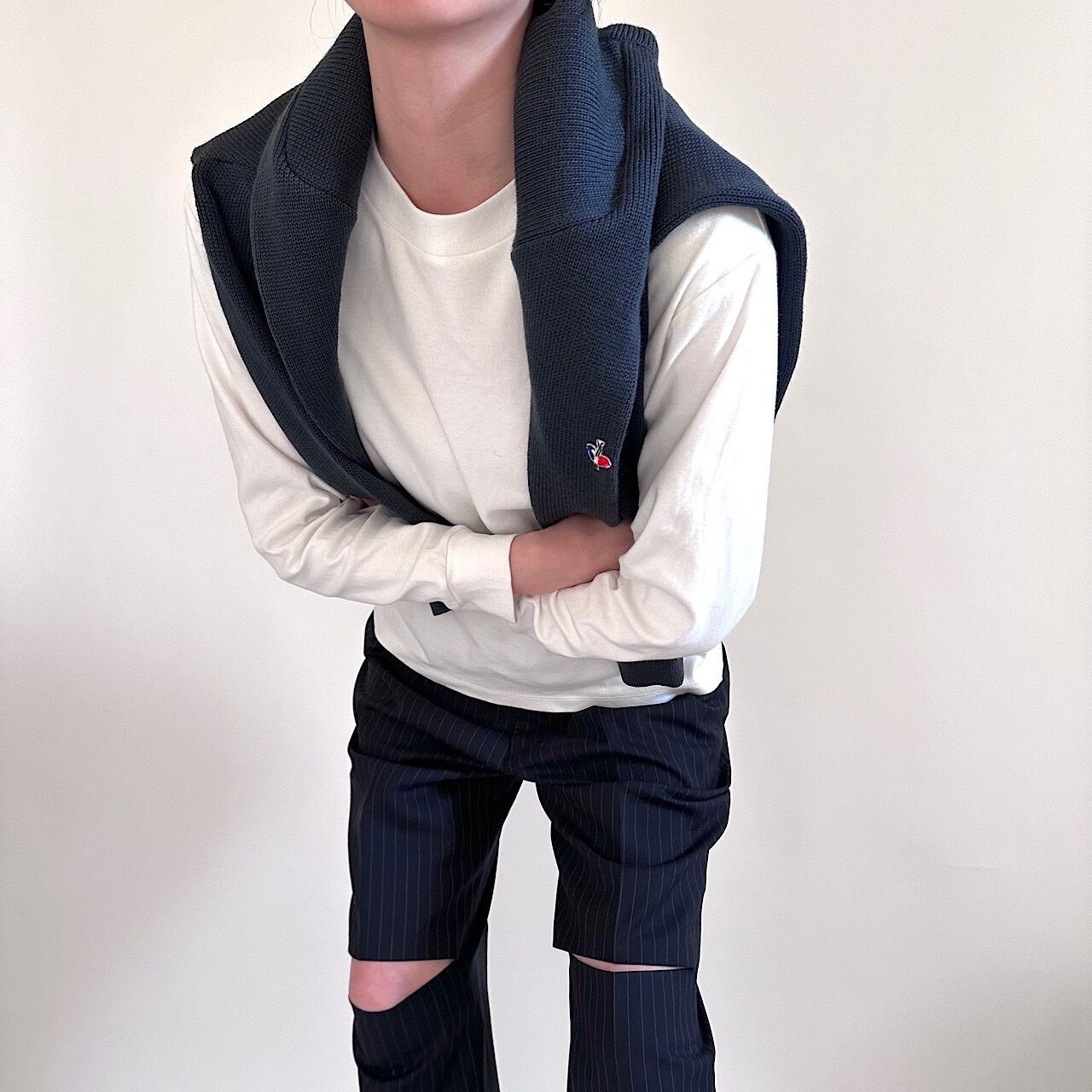 トリコロールの鳥が愛らしく、シンプルながら絶妙なお色味とショルダーの切替、拘りとセンスが詰まったお品です。