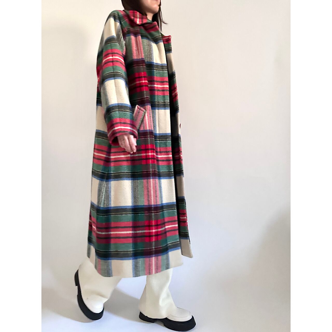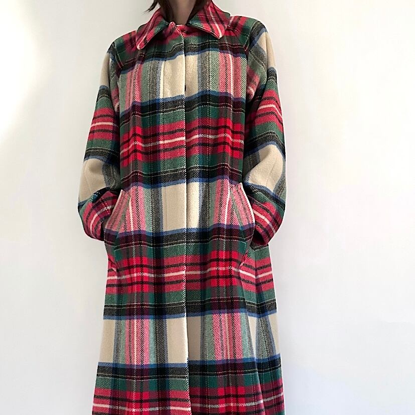 粗野な素材感と大胆なタータンチェック柄がコーディネートの主役に。