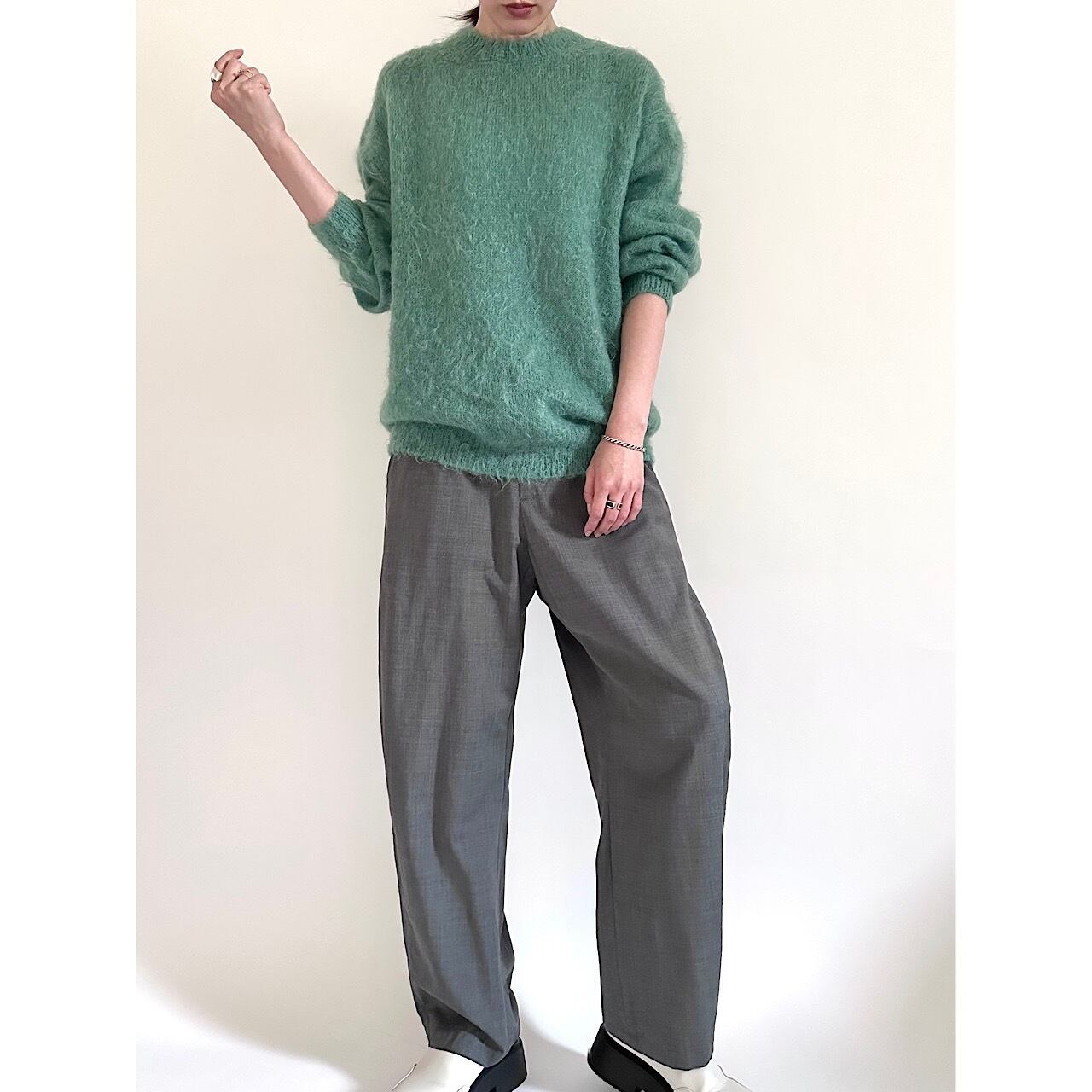 南アフリカ産の柔らかなスーパーキッドモヘヤを使用し、軽くて肌触りが良く、モヘヤ特有の光沢感と毛足の長さが特徴です。
