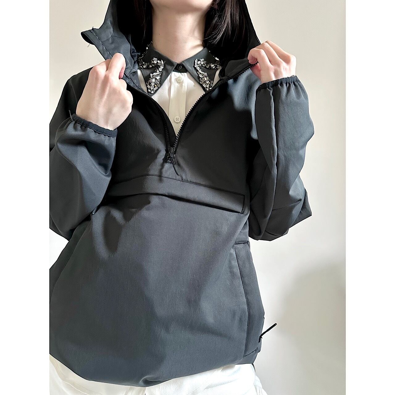 襟元のビジューでどんなコーデも華やぐアイテム。